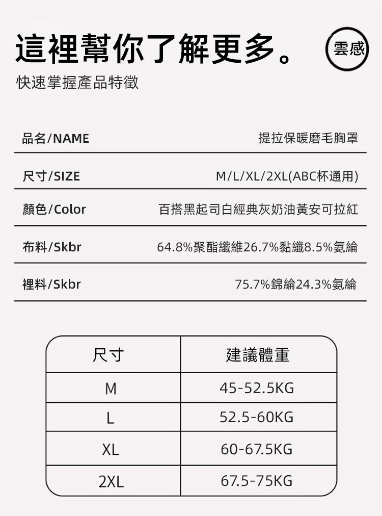 提拉美背暖膚保暖文胸